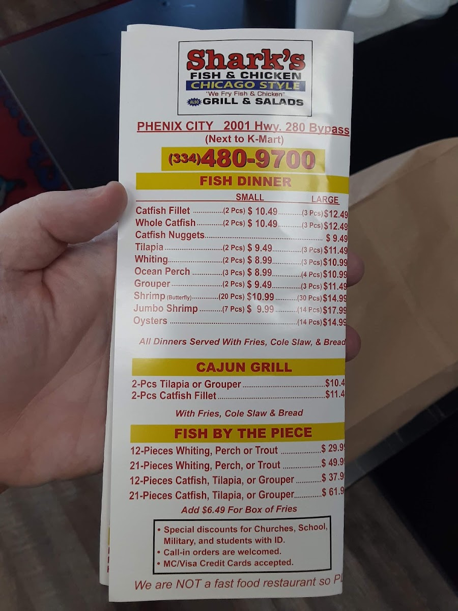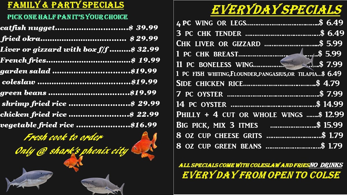 Sharks Fish & Chicken - Phenix City , Alabama Menu